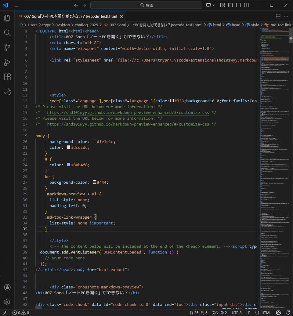 はい、この .html ファイル(Markdown Preview Enhanced からエクスポートされたもの)に対して、君が聞いてくれた4点に全部対応できます。簡単にできます!